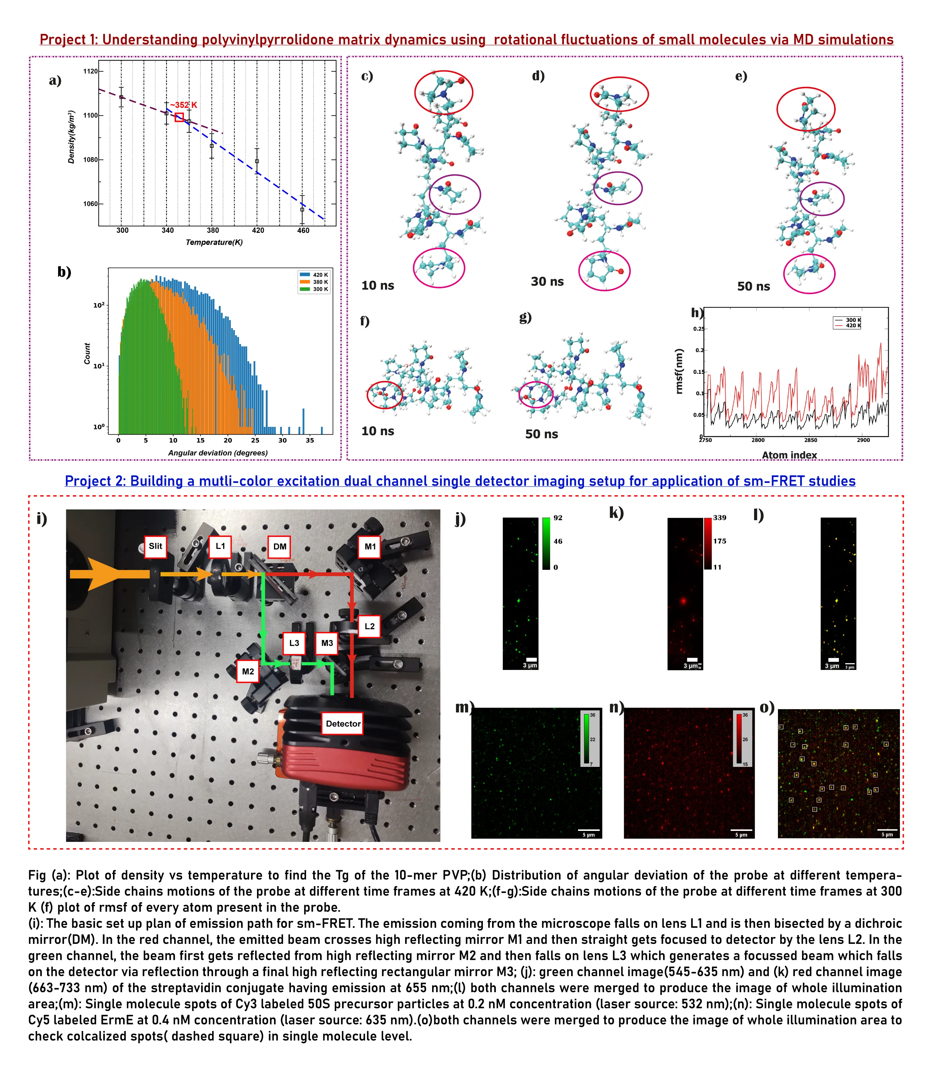 Insights to  polymer dynamics using MD simulation along with building an sm-FRET setup for  biological applications